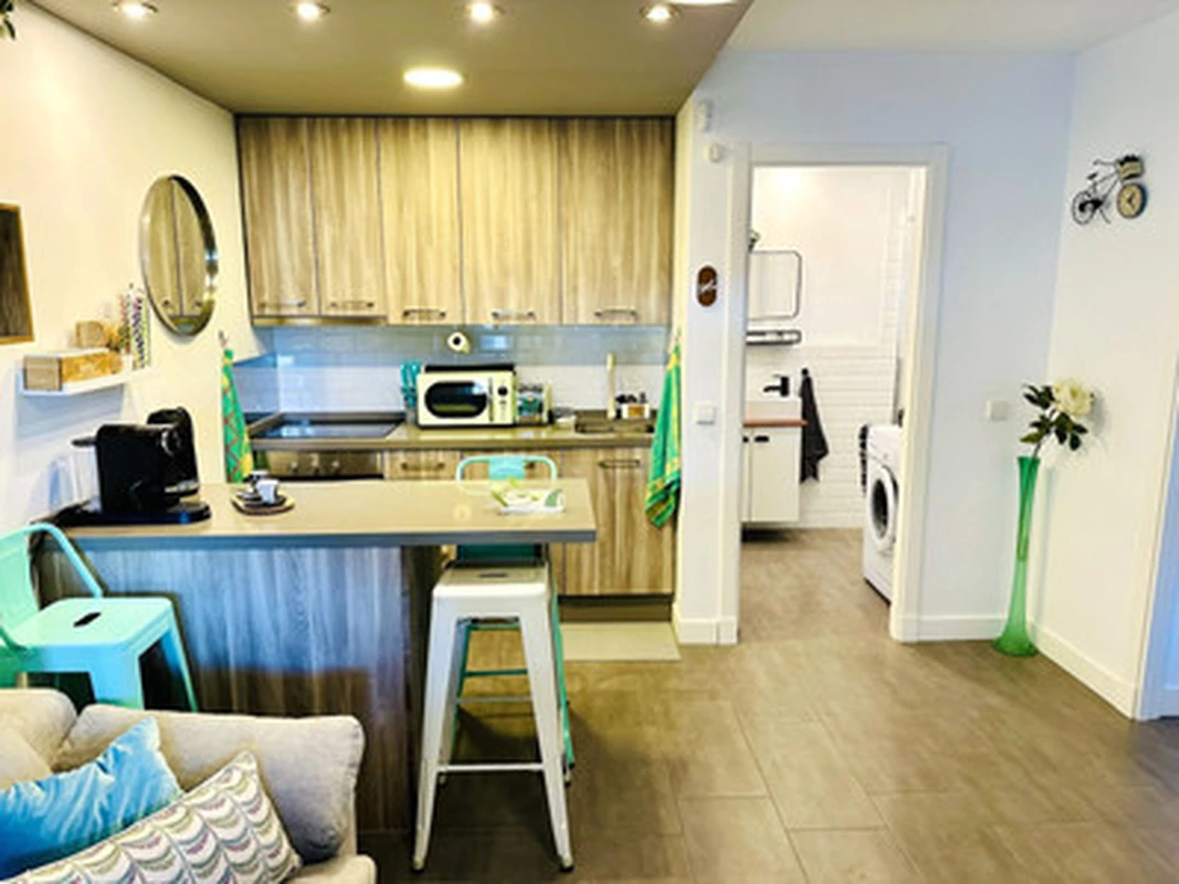 Compact yet highly functional, the apartment features a private entrance, renovated interiors and a comfortable layout suitable for professionals, couples, digital nomads or families with a baby (travel crib, high chair and potty included).